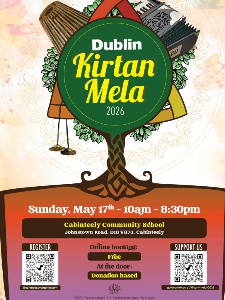 Dublin Kirtan Mela is a non-profit Community of Kirtan Lovers. We are a small group of organisers, whose hearts were touched and lives transformed when we came across this amazing form of Meditation known as Kirtan.
